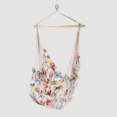 Add ultimate comfort to your backyard or patio space with this Cushioned Hammock Chair with Spreader Bar from Threshold™. Crafted from weather-resistant material for convenient outdoor use, this hammock chair comes with seat cushions for cozy lounging, while the wooden spreader bar adds extra comfort and makes it easier to climb in. Hang this cushioned hammock chair from a tree branch or porch ceiling to create a great spot to enjoy peaceful moments outdoors.