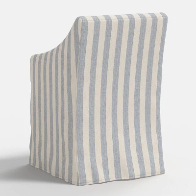 Enhance your dining space by wrapping your chair with this Sloped Arm Dining Chair Slipcover from Threshold™. This slipcover fits dining chairs with sloped arms and is made from a fabric blend of polyester and cotton for comfortable seating. Featuring a cheerful allover print, it creates a merry ambience to enjoy your meals.