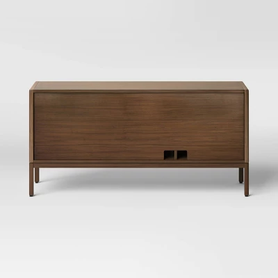 Elevate your entertainment space with this 55-Inch Withania Media Stand from Threshold™. Made with wood, this media stand strikes a clean-lined silhouette with woven rope details for extra visual flair that blends effortlessly with any decor style. The interior shelves offer ample storage space for media essentials and other items, while the cable management system keeps your space neat and organized. Plus, the media stand supports up to a 55-inch TV, so you can gather your loved ones for a cozy movie night or gaming session.
